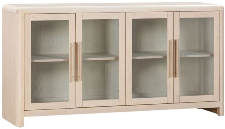 The Modus Furniture Liv White Sand Glass Door Ash Wood Sideboard exudes elegance and functionality with its sleek design and high-quality materials. Featuring spacious storage behind glass doors, it seamlessly blends modern aesthetics with practicality. Crafted from durable ash wood, its white sand finish adds a touch of sophistication to any living space.Read More