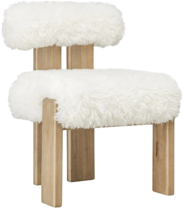 Nia dining accent chair brings modern flair and cozy comfort to your dining space. Upholstered in soft sheepskin fabric with a sleek lioness-finished frame, it offers plush seating and a stylish silhouette. Durable and versatile, this chair adds warmth, texture, and sophistication to any dining setting.Read More