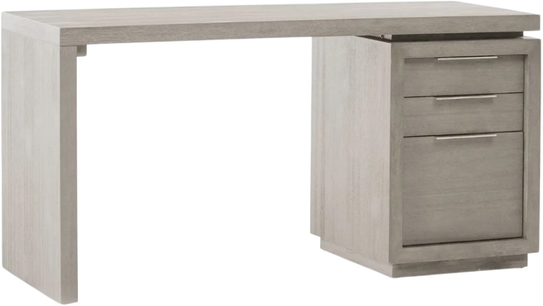 The Oxford home office collection makes a striking first impression with bold proportions, crisp, modern lines and a rich, weathered finish. Smartly accented with top-mounted nickel plated pulls and a floating plinth base, the single pedestal desk includes lateral file storage for letter- and legal-size paperwork.Read More