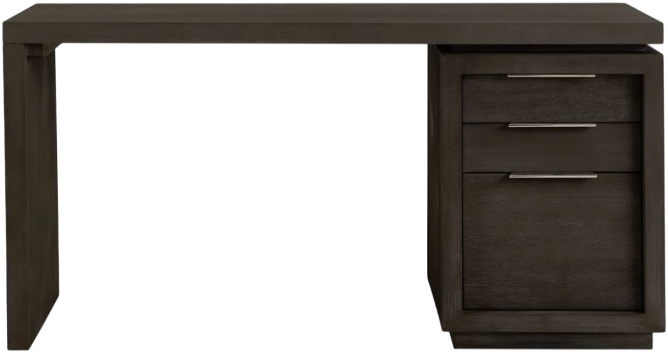 The Oxford home office collection makes a striking first impression with bold proportions, crisp, modern lines and a rich, weathered finish. Smartly accented with top-mounted nickel plated pulls and a floating plinth base, the single pedestal desk includes lateral file storage for letter- and legal-size paperwork.Read More