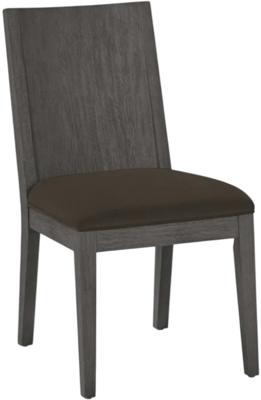 Dining chair is wrapped with medium gray velvet upholstery and features sinuous spring web suspension for hours of dining comfort