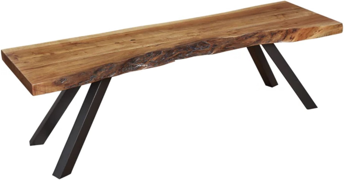 Made from 2-inch thick planks of solid Acacia wood and powder-coated iron, the Reese collection tops are finished and sealed with a clear semi-gloss NC lacquer to preserve their genuine tree edges and unique wood grain.Read More