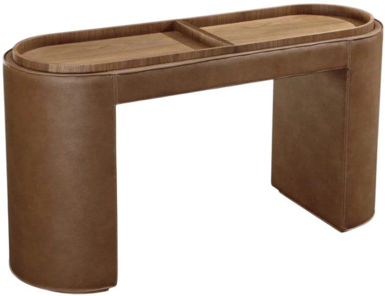 This artfully arranged occasional collection juxtaposes the color and texture of quality synthetic leather with the natural beauty of Walnut wood veneer. Each piece features reversible tray tops for flexible storage and serving.Read More