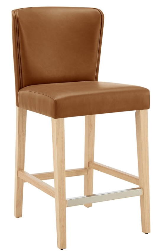 The latest Albie collection includes this 38" height counter stool comes with metal kickplate and contrasted by the natural color legs. A delightful urban modern design with wing back profile, upholstered in easy care quality faux leather. Ideal for the dining and breakfast rooms. Includes plastic glides for safety and stability.Read More