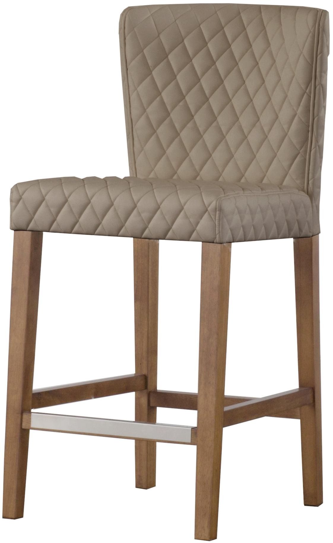 The latest Albie collection includes this 37.5" height counter stool in Dune contrasted by the brown legs. A delightful urban modern design with wing-back profile, upholstered in faux leather with diamond-quilted detail. Ideal for the dining and breakfast rooms.