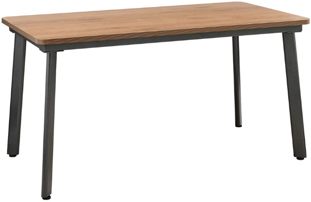 Your modern family's square dining table is equipped with rounded edge with sleek melamine top that's scratch-resistant and water-resistant. The metallic gunmetal tone powder coated steel legs are stylish and sturdy! Floor glides are included for protection.