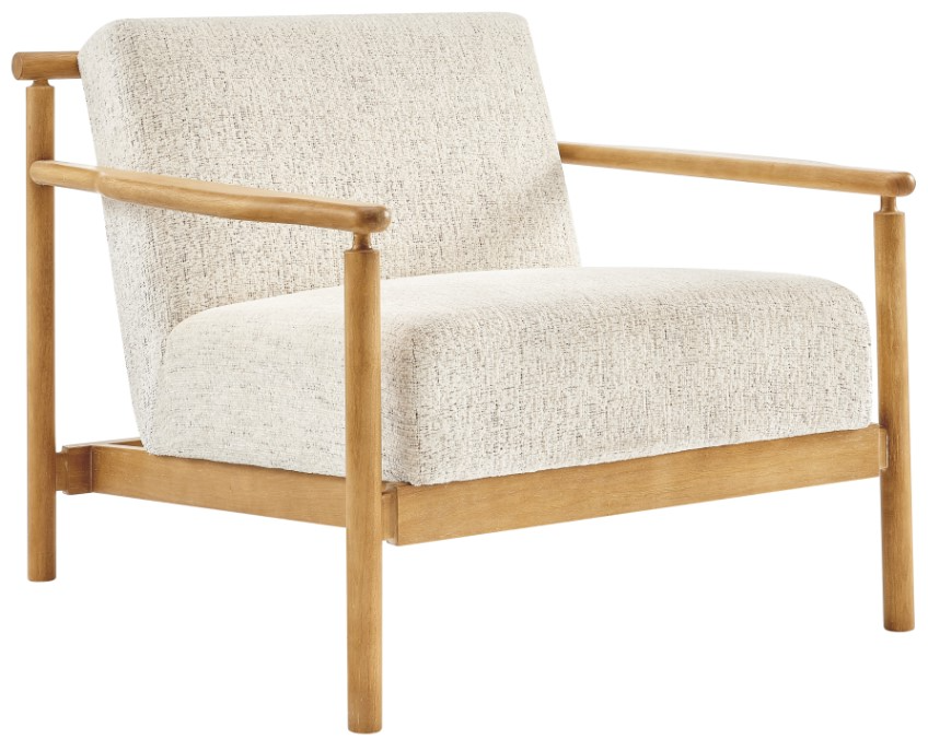 The Arnold accent chair offers a sophisticated design upgrade for modern and transitional homes. While it makes a chic statement on its own, it's equally elegant when paired. Count on cozy lounging in high-density cushion of Cream tone fabric. The minimalist solid wood frame is elegantly finished in Natural. Arriving fully assembled, homeowners can select from a range of versatile color options.