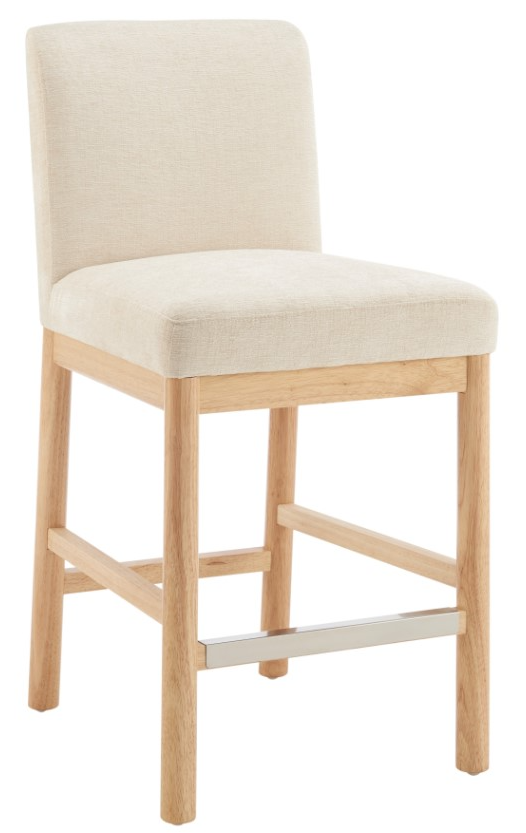For a Japandi-inspired breakfast bar vibe, consider the Bloomfield 25" height seat. Its quality polyester fabric and solid wood frame are a stylish solution that's also durable. Includes plastic glides for safety and stability.Read More