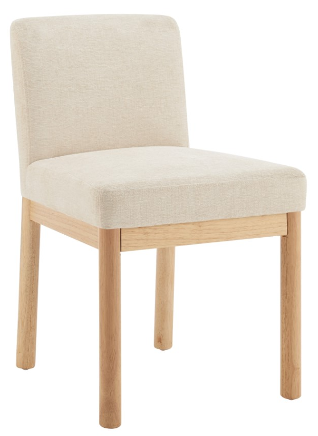 Create a modern ambiance by adding a touch of charming elegance to the space. Incorporating the Bloomfield chair style infuse a sense of calm and nature. In low-height back, decorated with soft, chenille fabric in Dark Brown tone and natural finish frame. The chair also features rounded wooden legs that's charming. Easy-care polyester fabric has been tested and approved for high-traffic family rooms. Easy Assembly. Available in Santana Cream and Santana Dark Brown. Fabric is 100% PES.