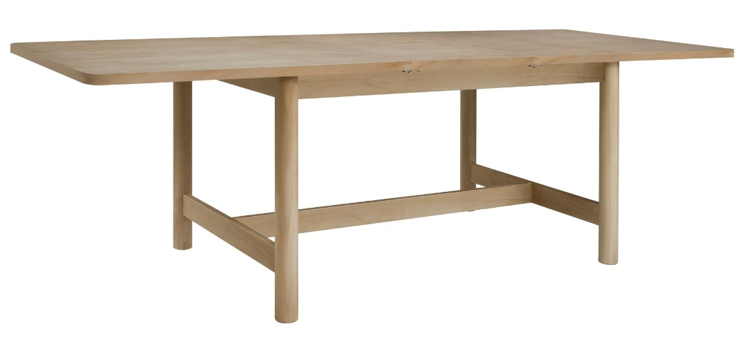 The Bloomfield collection embraces the soft curves aesthetics that was era-defining of the 80's. Enhanced with rounded corners and tubular legs, this dining table is 80" in length, with extension, it extends further to 100". Easy Assembly. Available in Natural Pine.