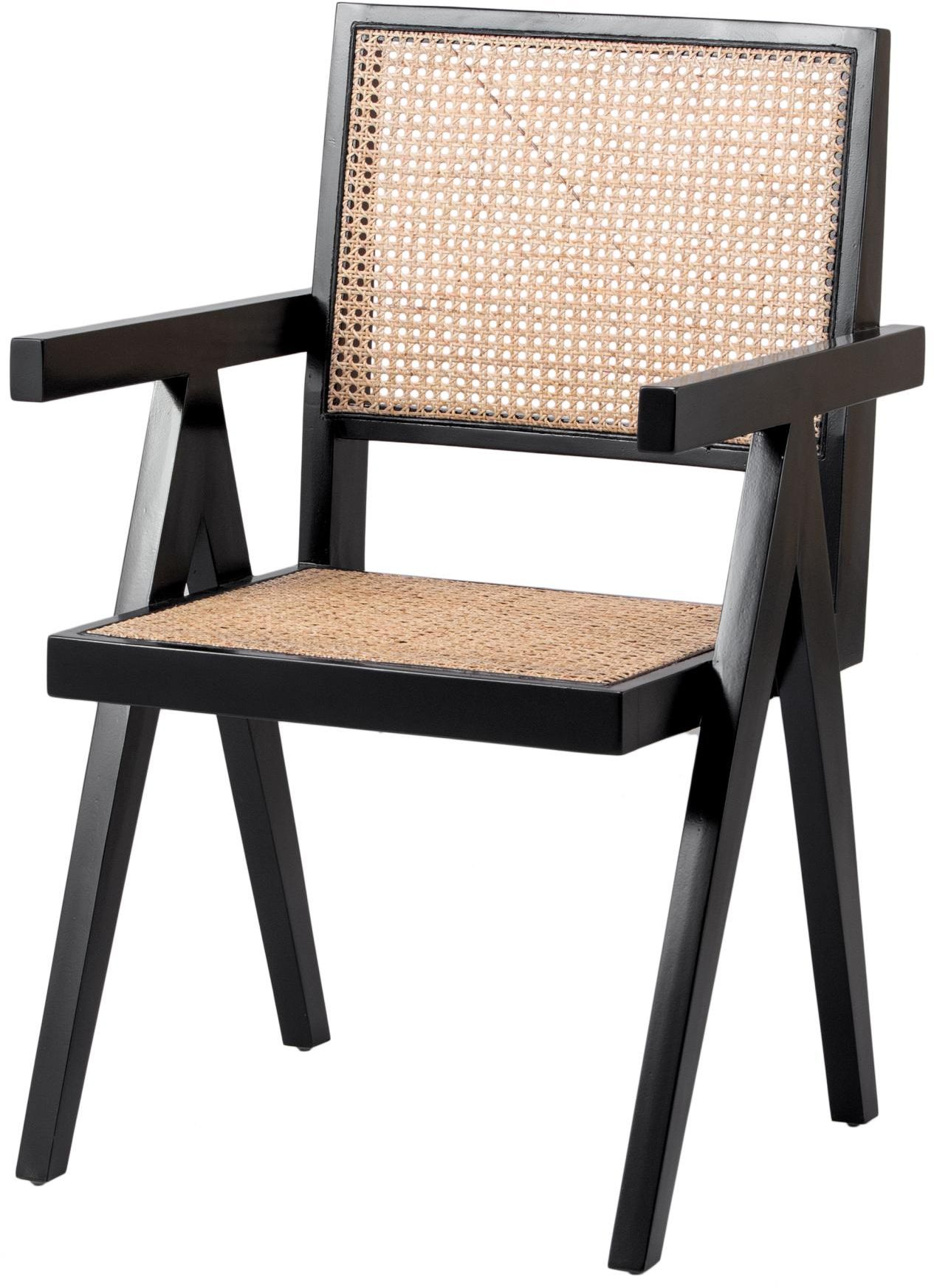 Mid-Century inspired featuring Black painted Mahogany wood frame, contrasted beautifully with Cane webbing seat and backrest. V-shape leg base completes the stylish look.