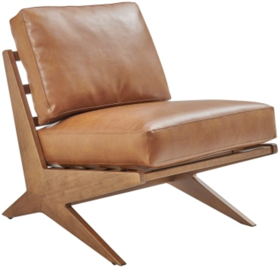 Timeless Mid-Century Accent Chair - incorporating faux leather in brown tone constructed of high-density foam cushion for the back and seating area, the chair is sleek and polished in appearance. While the ladder back frame and sharp, angular legs highlight asymmetrical shapes for boldness.Read More