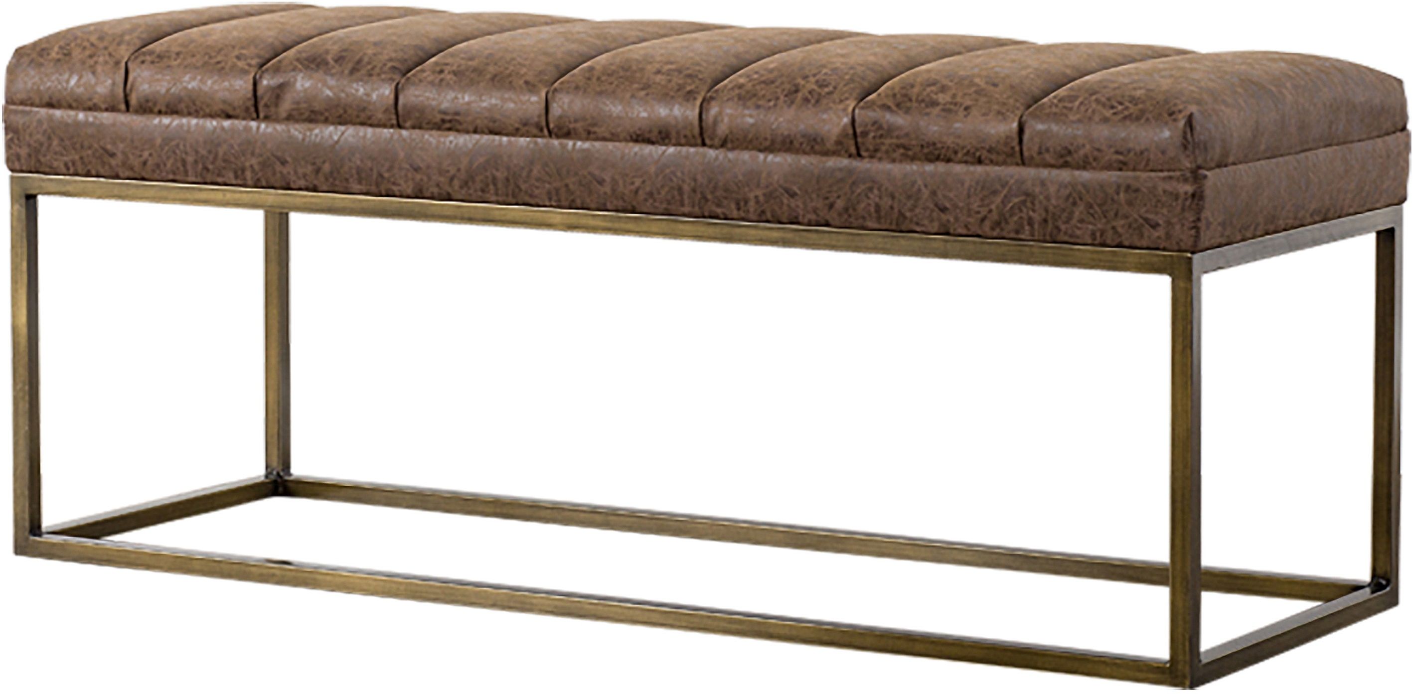 Elegant modern bench, featuring plush channel pleating with streamlined brushed gold steel frame.