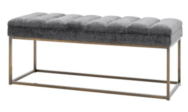 Elevate your space with darius bench. It’s able to transition to nearly any room in the home, wherever and whenever extra seating is needed. Easy assembly. Darius measures 48 inches wide and 17.5 inches deep, and it’s available in different texture and color options. The steel base is painted a color called brushed gold.Read More