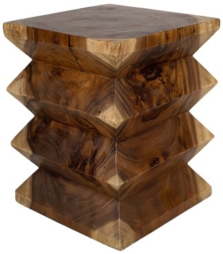 For a contemporary vibe that's unique, the Elsie side table offers a distinctive square bellows profile that has a floating effect. Hand carved and made of Trembesi wood, this is a definite eye-catcher. All of the wood’s characteristics like knots, holes, and small fissures serve to make the piece unique.Read More