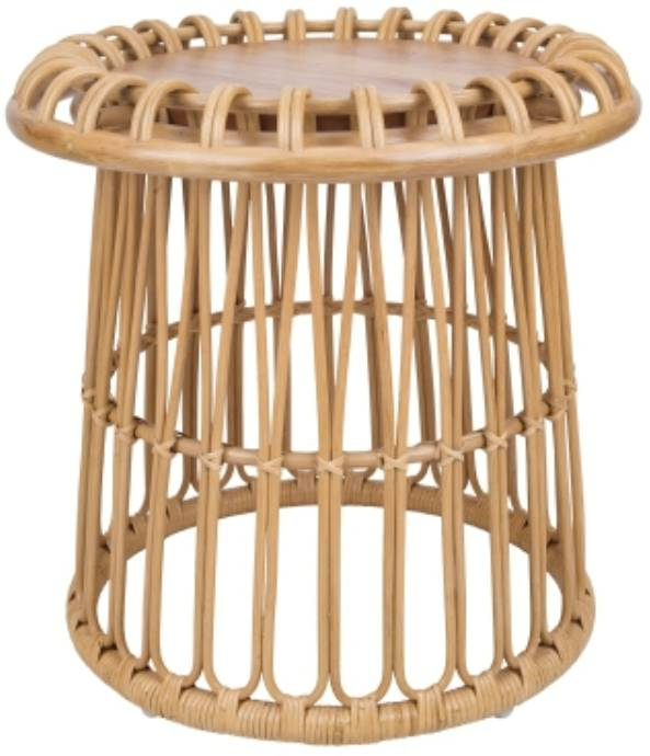 Modernism meets Bohemian vibe with Galia collection. Indonesian artisans skillfully bent and wrapped rattan pieces to create sturdy side table that's also delightful for any space. In contemporary pillar shape base, it's crafted of solid Mindi wood top and rattan. Plastic glides are included for safety and stability. Matching coffee table is available and sold separately.