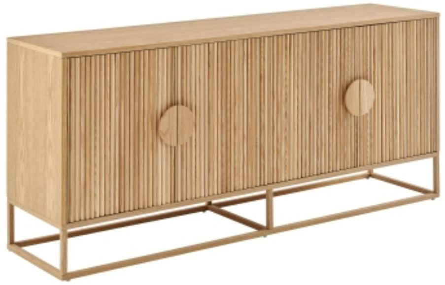 The New Modern Lifestyle features Japandi ambiance that highlights the utilization of light wood tones on modern design. This sideboard highlights on-trend ridged front doors that incorporates soft-close hinges in natural veneer finish. The round pulls and floating style base add a modern minimalist vibe to the design.Read More