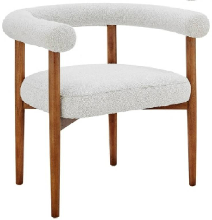 Indulge in the Interior Décor! Whether it's a corner space or a dining room, this chair highlights form + function. Its trending bolster back seat is accentuated with boucle beige cover and solid rubber wood legs creating a refreshed mid-century lifestyle piece.Read More