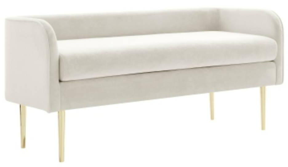 Add a touch of glam to your space! This versatile bench is great for the foyer, the bedroom, or even the living room as it features luxe velvet fabric in on-trend curvy silhouette. Contrasting gold tone legs add the glamour appeal. It's also equipped with high-density foam cushion and the fabric is 100% PES.Read More