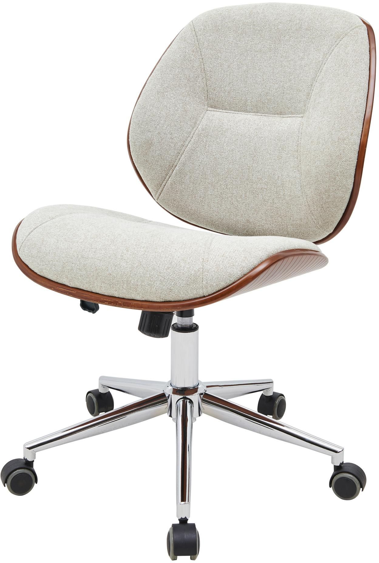 Give your home office an upgrade with Shaun swivel task chair. It’s crafted from a bamboo shell that’s topped with a chic fabric that stands up to everyday use on chrome casters. The seat height adjusts from 18 inches to 21 inches. Assembly required, available in Black Faux Leather/Walnut and Havana Linen Fabric/Walnut finish.