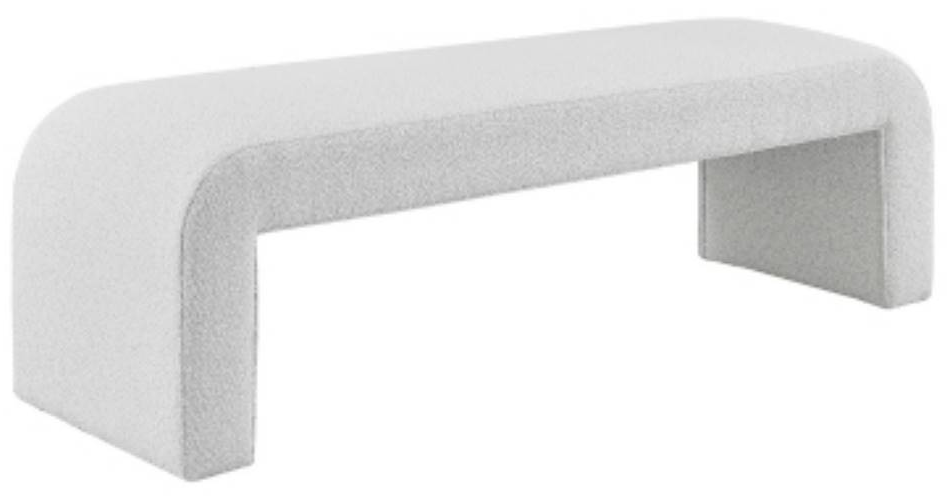 Basic, yet Super Chic Boucle Bench - in minimalist silhouette, this bench measures 63" width, which makes it ideal for your bedroom or entrance areas. It's soft, fully covered and padded in trendy boucle fabric. Fully Assembled. Available in Boucle Beige.Read More