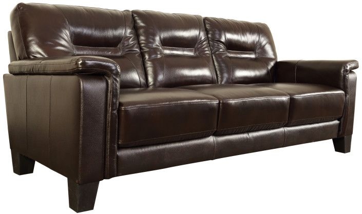 The Alto Sofa is covered in soft top quality chocolate brown leather with leather match poly. Featuring an elegant transitional design this set has comfortable tight seats made from high density foam and contrasting espresso legs. The perfect sofa for relaxing in style.Read More