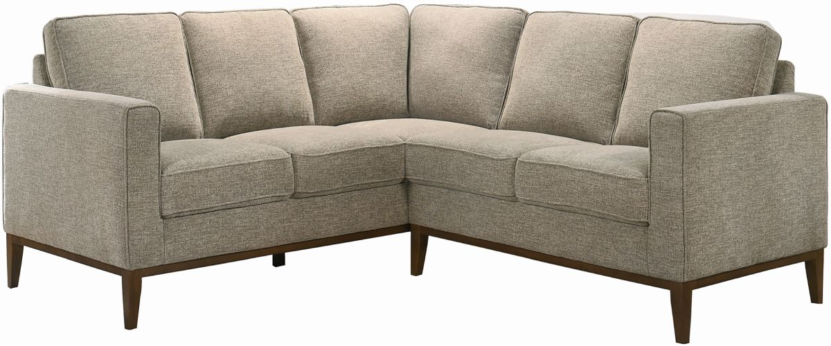 The Annie is a versatile contemporary sectional with an expensive looking wood trim. Covered in warm cream linen look poly with clean square arms, this piece is an elegant addition to your homeRead More