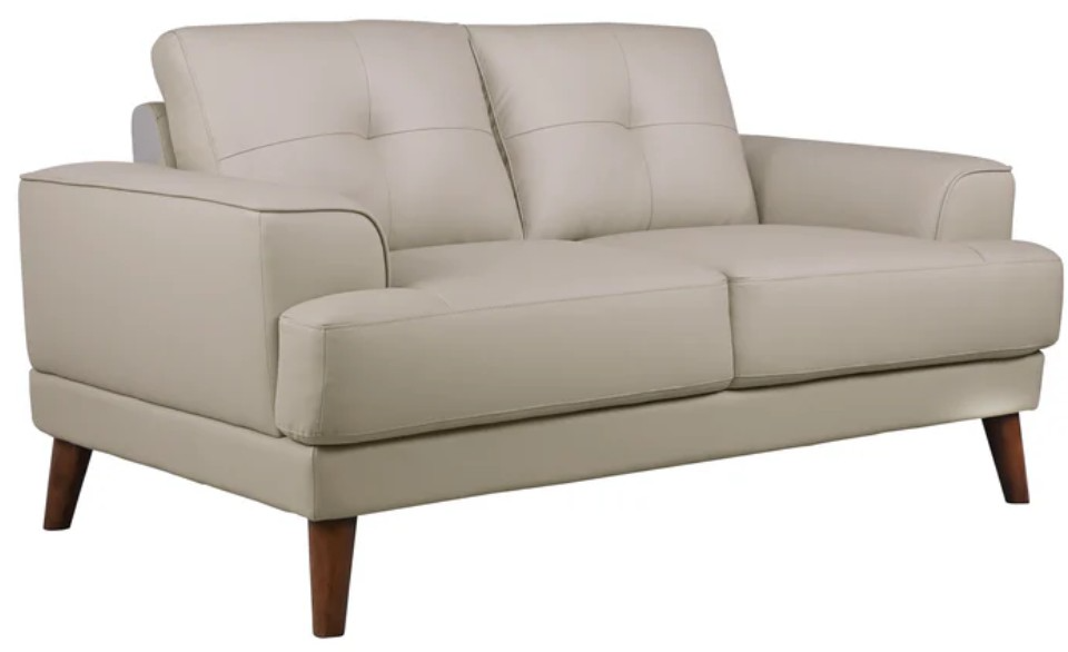 The Anzio Loveseat is covered in soft top quality cream leather with leather match poly. Featuring an elegant transitional design it has a comfortable tight seats made from high density foam and warm honey wood legs. The perfect sofa for relaxing in style.Read More