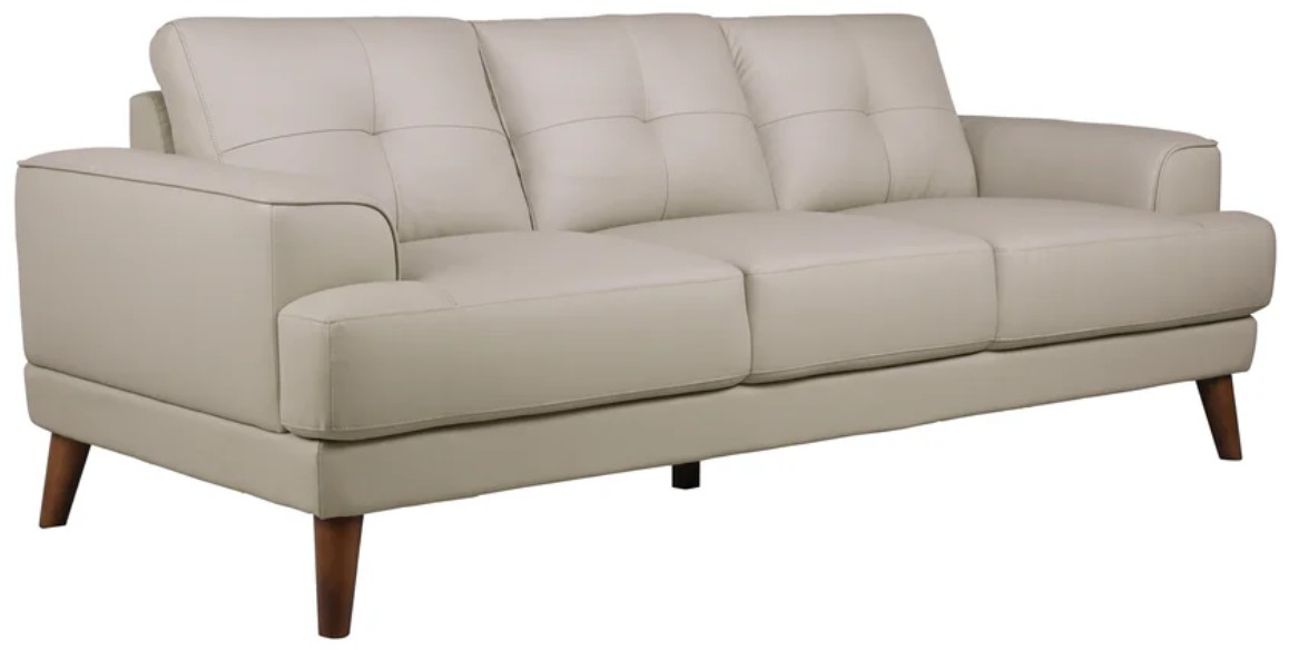 The Anzio Sofa is covered in soft top quality cream leather with leather match poly. Featuring an elegant transitional design it has a comfortable tight seats made from high density foam and warm honey wood legs. The perfect sofa for relaxing in style.Read More