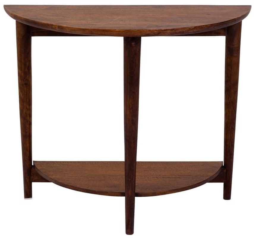 The Baja console table has a chic demi-lune shape which is perfect for narrow spaces. Made from solid mango wood and finished in a rich chestnut stain, this mid-century modern style piece is perfect for any modern home.