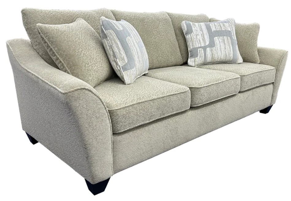 The Columbia Collection is upholstered in a plush tan microfiber fabric that is soft to the touch and easy to clean. The sofa features four pillows, two of which feature woven geometric patterns, adding a touch of style. The flared arms and contrasting feet give this set a sleek and modern look.Read More