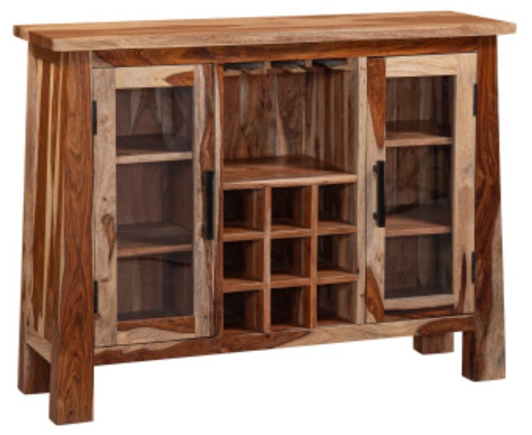 The Kalispell Natural Bar Cabinet blends rustic charm with functionality. Featuring ample storage, adjustable shelves, and dedicated spaces for bottles and glassware, it offers a stylish and organized solution for entertaining in any space.Read More