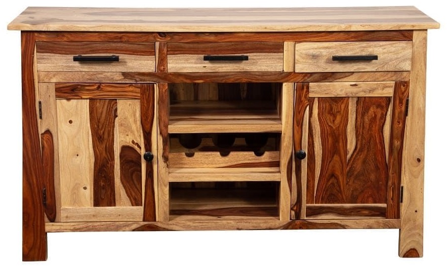 The solid wood Kalispell Collection is an homage to the American Arts & Crafts movement. Handmade in India by artisans, this collection celebrates quality craftsmanship and the beautiful, rich grain of sheesham wood. Hammered black metal hardware and tapered lines add architectural detail to this classic wood collection.