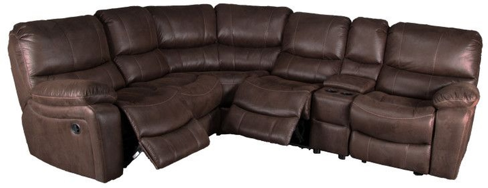The Ramsey M6050 AC/AR Sectional by Porter Designs combines plush comfort with functional design. Upholstered in padded microfiber with contrast stitching, it features bucket seats and 2.2 lb. luxury foam for superior relaxation. Manual reclining mechanisms and a modular layout make it a versatile centerpiece for any living space..Read More