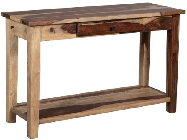 Our solid wood Tahoe Console Table is a great accent piece for a hallway or behind a sofa. A pullout drawer and bottom shelf provides additional storage. Each piece is hand crafted from solid sheesham wood and then carefully hand joined. Unique graining and color are natures signature on this solid wood collection.Read More