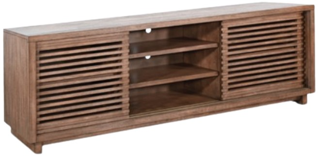 Discover our sleek media console, expertly crafted from mahogany solids and veneers. Designed for modern living, it features cord management, adjustable shelves, and two sliding doors with wooden slot panels. The Buckskin finish adds a touch of sophistication to your entertainment space.Read More