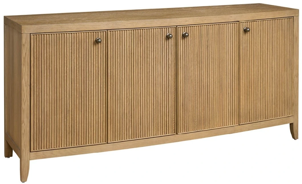 The Carmen credenza, a sophisticated storage solution, offers ample space behind four doors with five adjustable shelves. Its distinctive, vertically textured design, complemented by sleek pulls and a Skylark Finish, elevates any interior space.Read More
