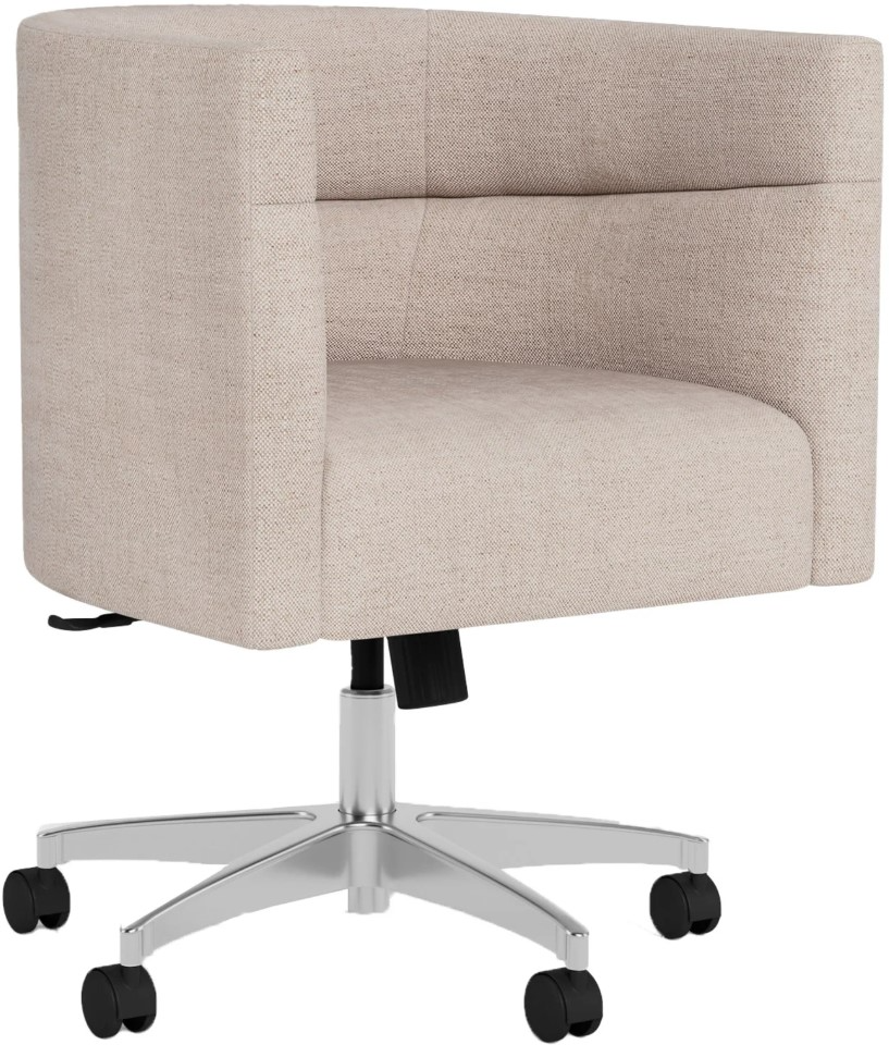 Cozy and lighthearted, the short-barreled Maxie chair is the perfect accessory for any home office space, coming complete with casters for easy mobility. Choose between two base finish options to complete your design.Read More