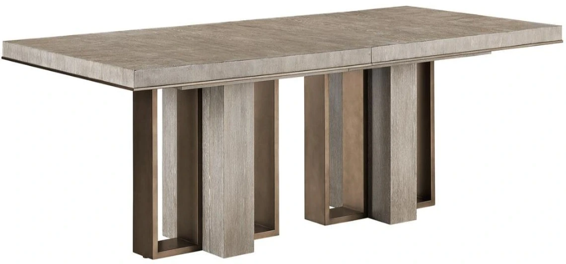 Clean lines, rich wood grain and metal accents combine to create an anchoring effect in the dining room. Make a bold statement by incorporating this stunning furniture into your home.Read More