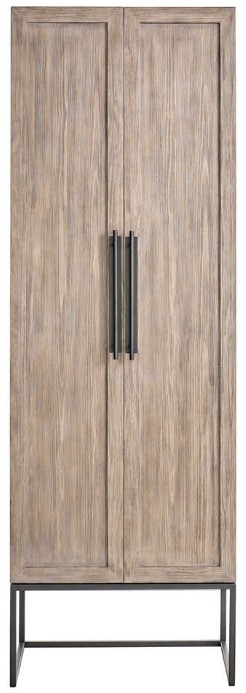 Showcasing a warm boulder medium-brown finish, the utility cabinet brings refined storage to any room. Its sleek metal base elevates adjustable wood shelves, accented with inset glass, offering a blend of modern design and practical display.Read More