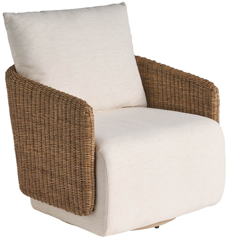 The Enzo swivel chair combines contemporary style with coastal charm, featuring a woven wicker frame paired with soft Nomad Snow fabric upholstery. Its smooth swivel base provides easy movement, making it a versatile and inviting seating option for living rooms, sunrooms, or relaxed entertaining spaces.Read More