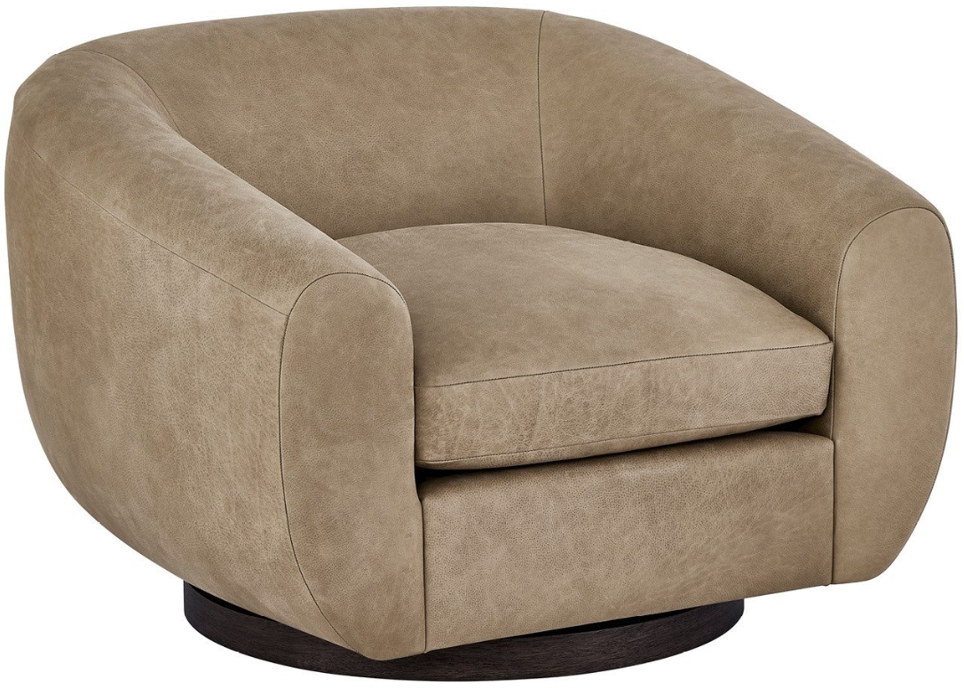 The fitz swivel chair exudes sleek sophistication with its Vail Toffee leather upholstery, offering a rich, warm tone and smooth texture. Its medium brown oak leg finish adds natural elegance, while the swivel base provides flexibility, making it a refined seating choice for modern living spaces.Read More