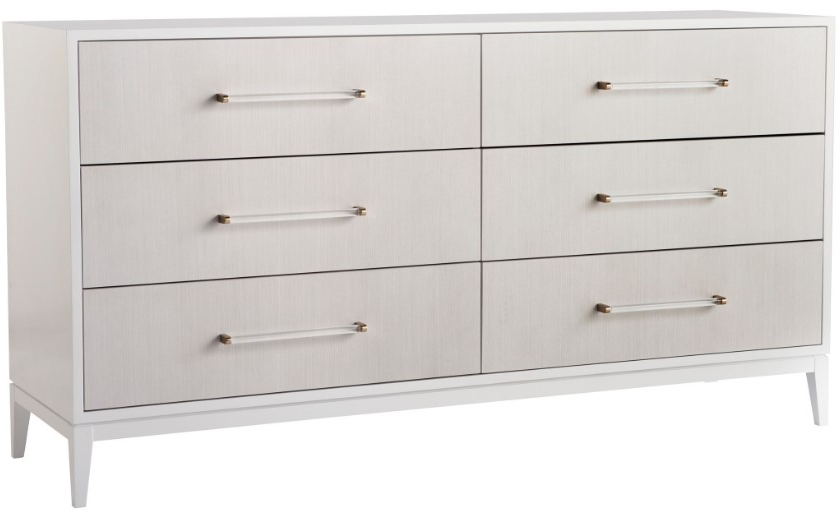 A light and airy addition to any bedroom, the Brentwood dresser features Alabaster finished drawer fronts with champagne and acrylic bar hardware, six spacious drawers, and a gleaming white lacquer case.Read More