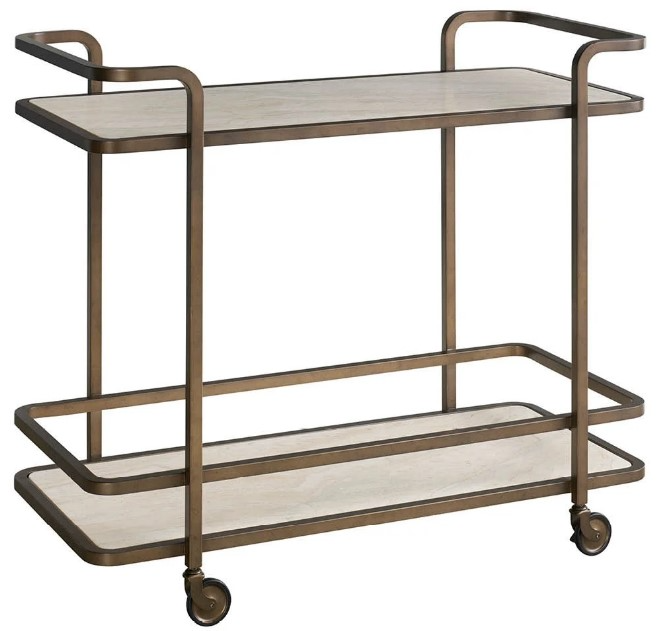 The aged gold bar cart brings a touch of industrial chic to your entertaining space. Its sleek, metal frame and golden finish create a sophisticated and mobile serving station, perfect for hosting gatherings or adding a touch of vintage flair to your décor.Read More