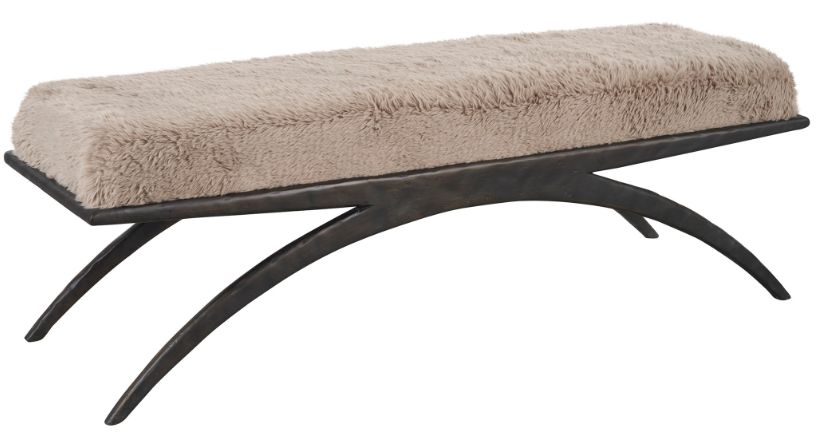 The Nola Bench presents a luxurious interplay of textures, featuring a sumptuously fuzzy seat in Yakety Yak Granite fabric atop a sleek, cast aluminum base finished in an elegant Bronze.Read More
