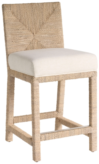 The abaca counter chair is wrapped in 3-5mm natural abaca fiber with a brushed stainless steel footplate, combining organic texture with modern details. This counter stool features a nomad snow upholstered seat for comfort while the 32-inch height creates the perfect counter seating for your coastal kitchen.Read More