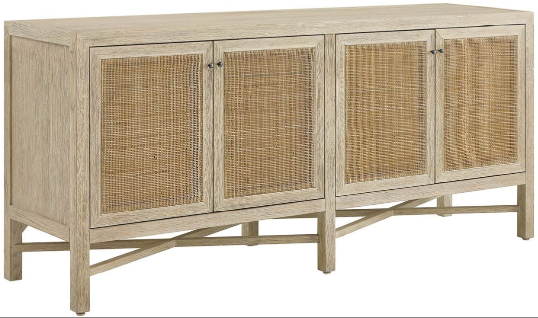 The dockside credenza features door panels showcasing a woven cane weave for rich texture and organic warmth. Its X-base stretcher and ample interior storage create a statement piece that perfectly balances natural elements with refined coastal style.Read More