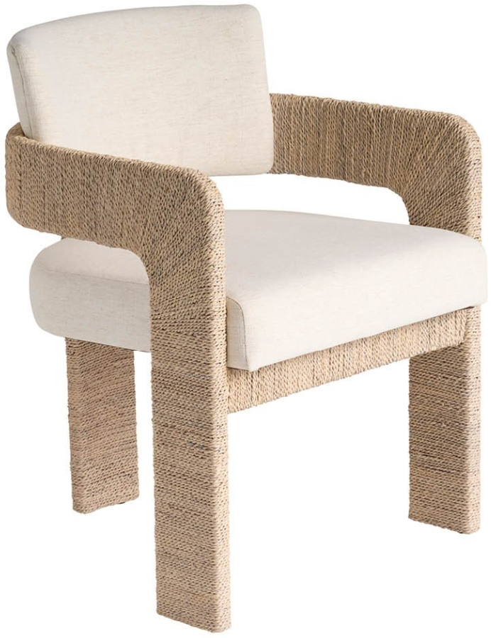 The Abaca arm chair is wrapped in natural abaca fiber, combining organic texture with comfortable upholstered seating in Nomad Snow fabric. This dining arm chair with 31-inch height and 19-inch seat height provides perfect dining comfort while bringing natural materials and coastal warmth to your dining space.Read More
