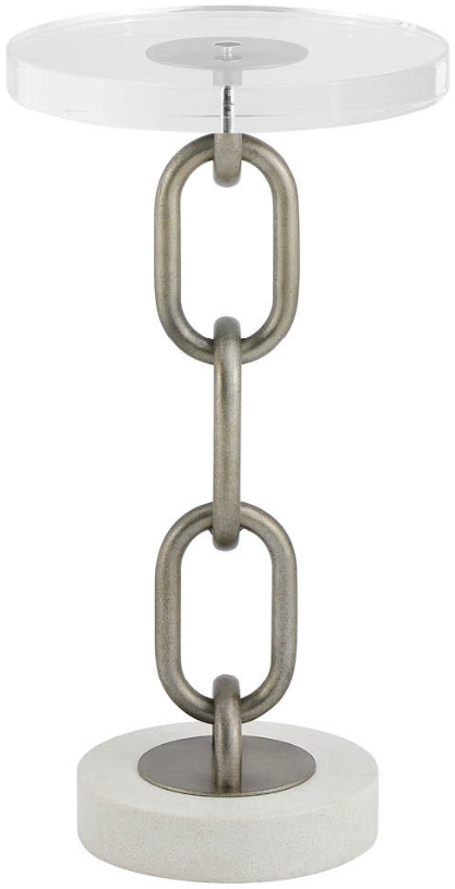 The Link accent table features a distinctive 12-inch design with an acrylic top suspended by chain links between white quartz bases. This 22-inch height accent table with its creative design makes it the perfect spot for a drink while adding a touch of coastal whimsy to your living space.Read More