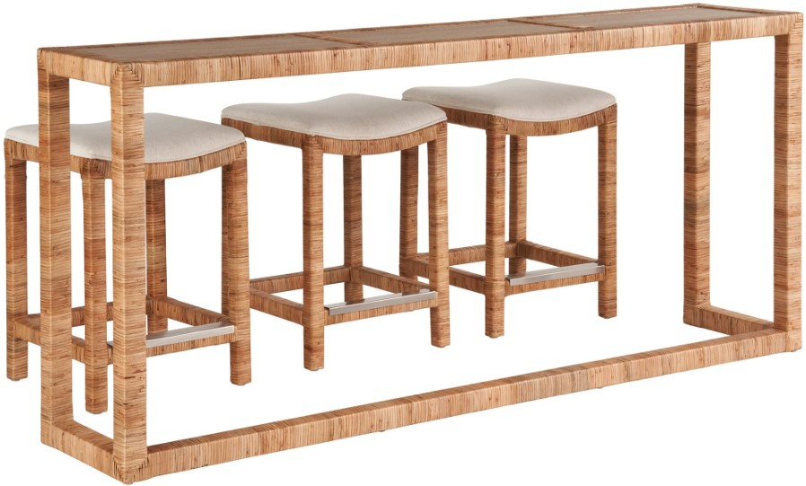 The ultimate expression of beachy-cool, the sandbar console with stools brings depth to interiors with its rattan body and offers additional comfort with its white upholstered matching seats. It’s a versatile piece that blends seamlessly into any luxe interiors.Read More